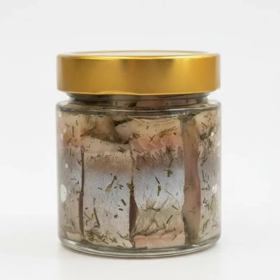 Филе сельди с укропом в масле — это отборное филе сельди, приготовленное по классической слабосолёной технологии и замаринованное в ароматном растительном масле с добавлением свежего укропа. Масло подчёркивает естественную сочность рыбы, делает вкус мягким, округлым и насыщенным.